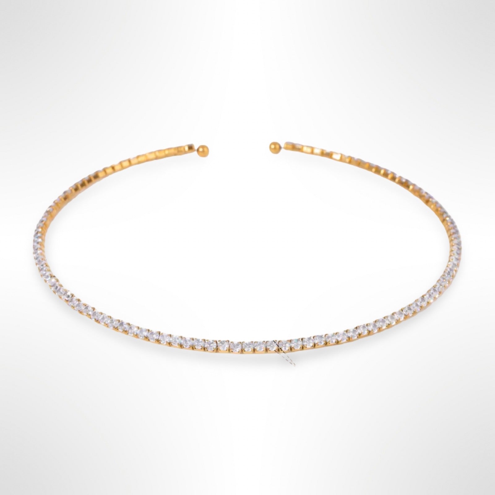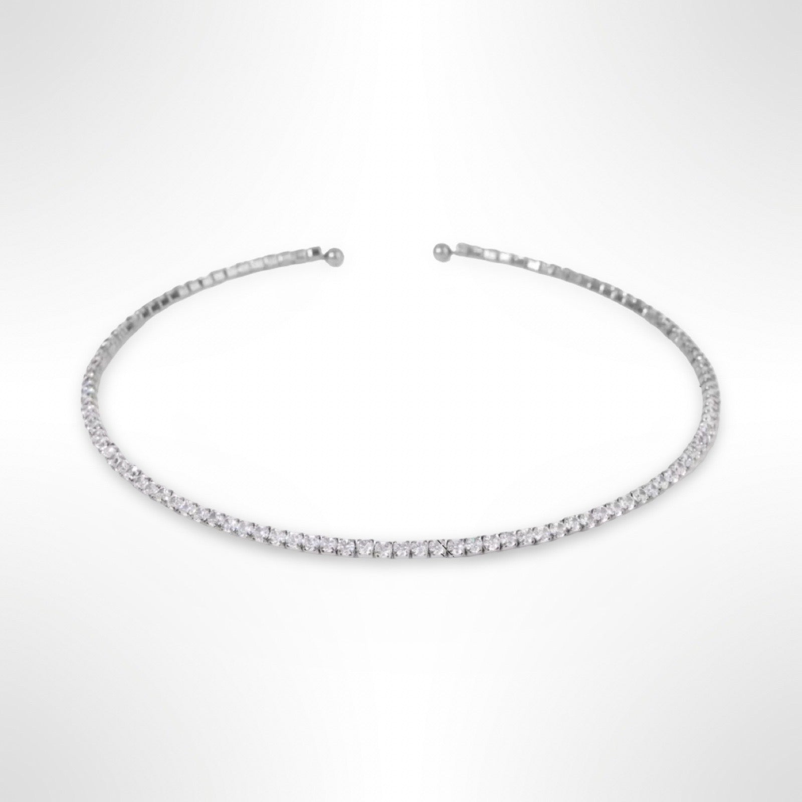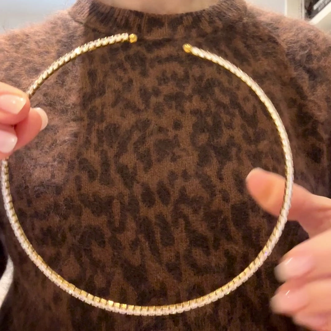 Choker style collar. Sits above the collar bone - approximately 14 inches with flexible bend up to 15 inches.