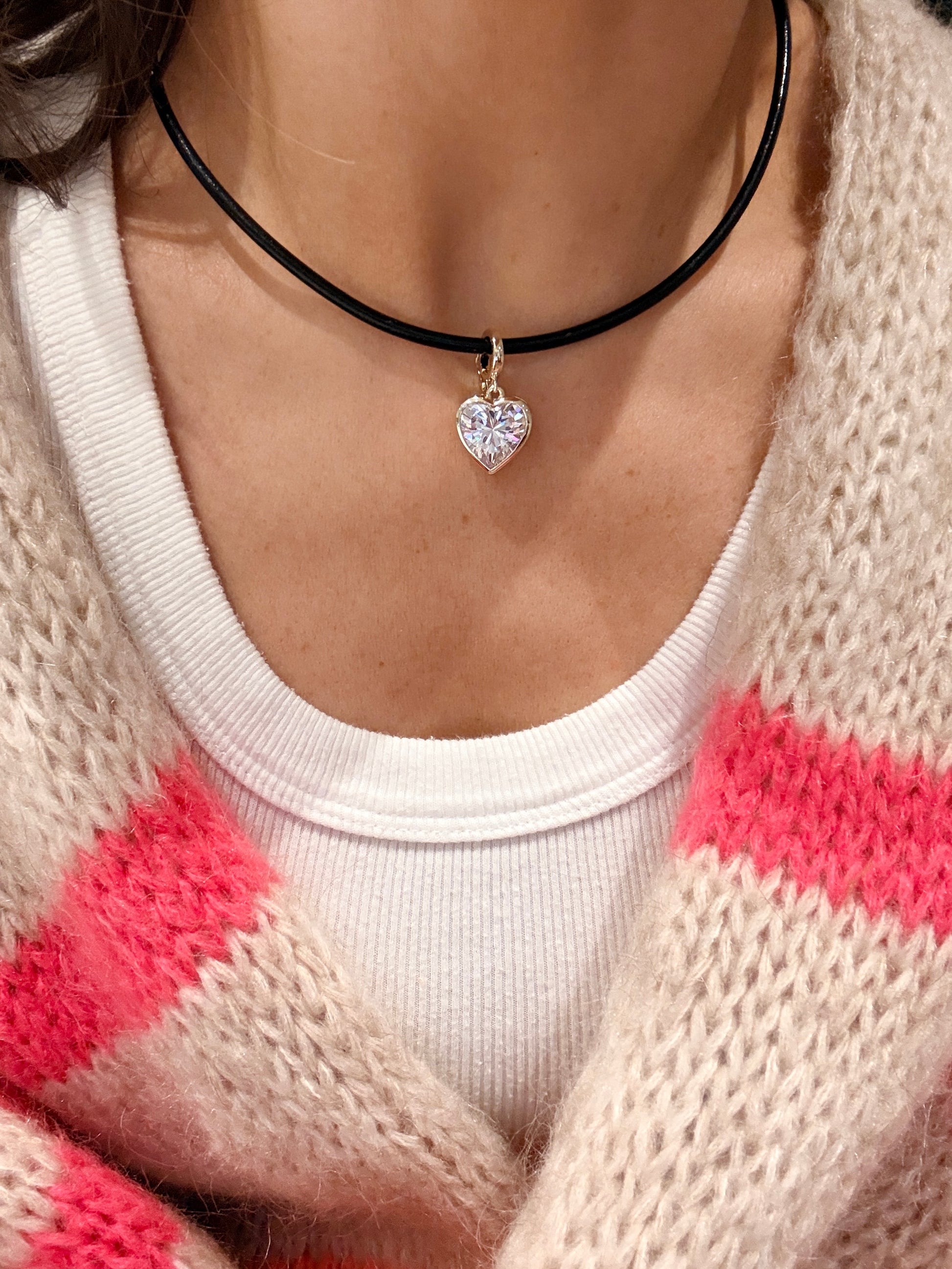 This structured cord is meant to fit small and sit on or above the collar bone.