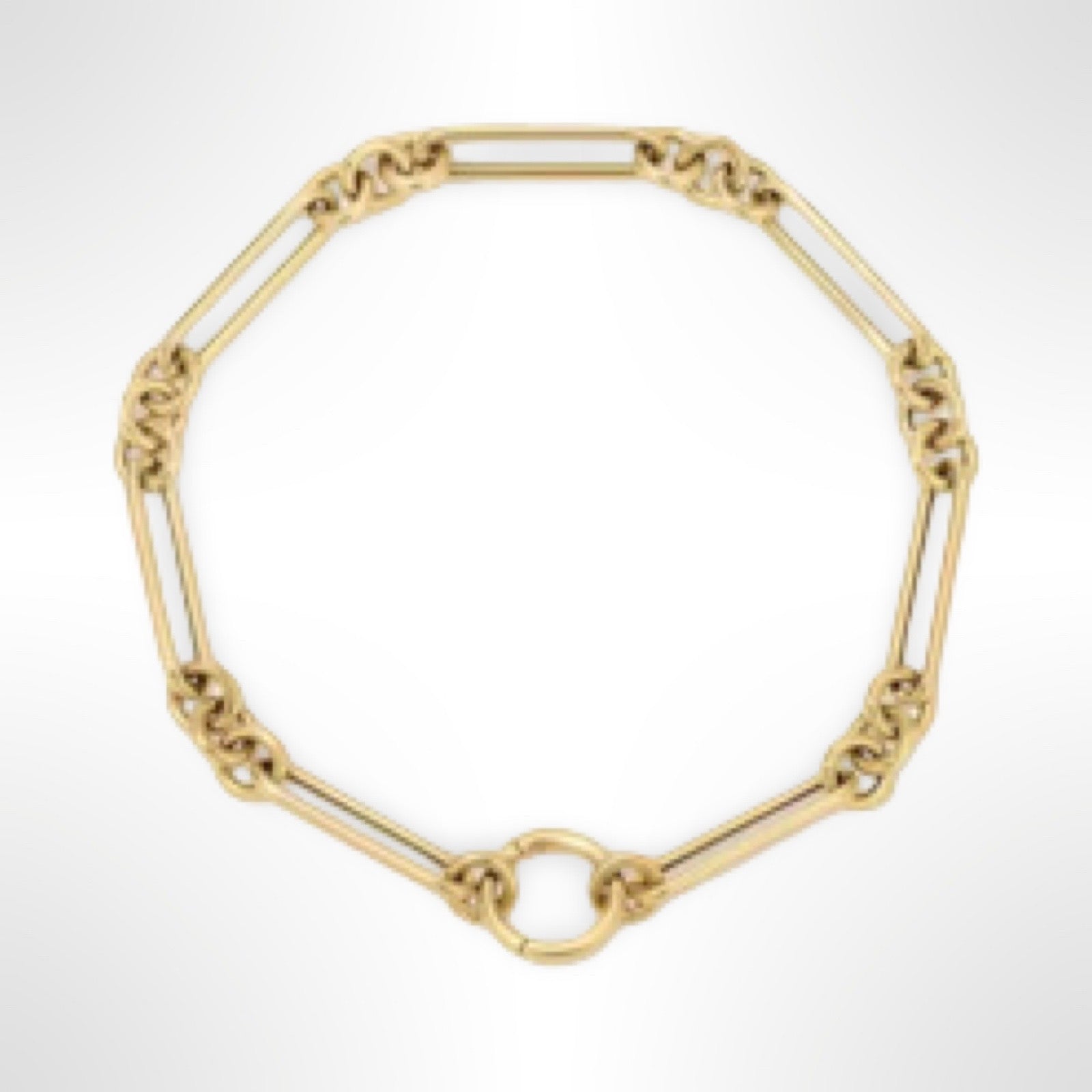 14k gold plated brass. O Ring spring clasp for seamless closure and easily added charms. Length: 6.5 inches.