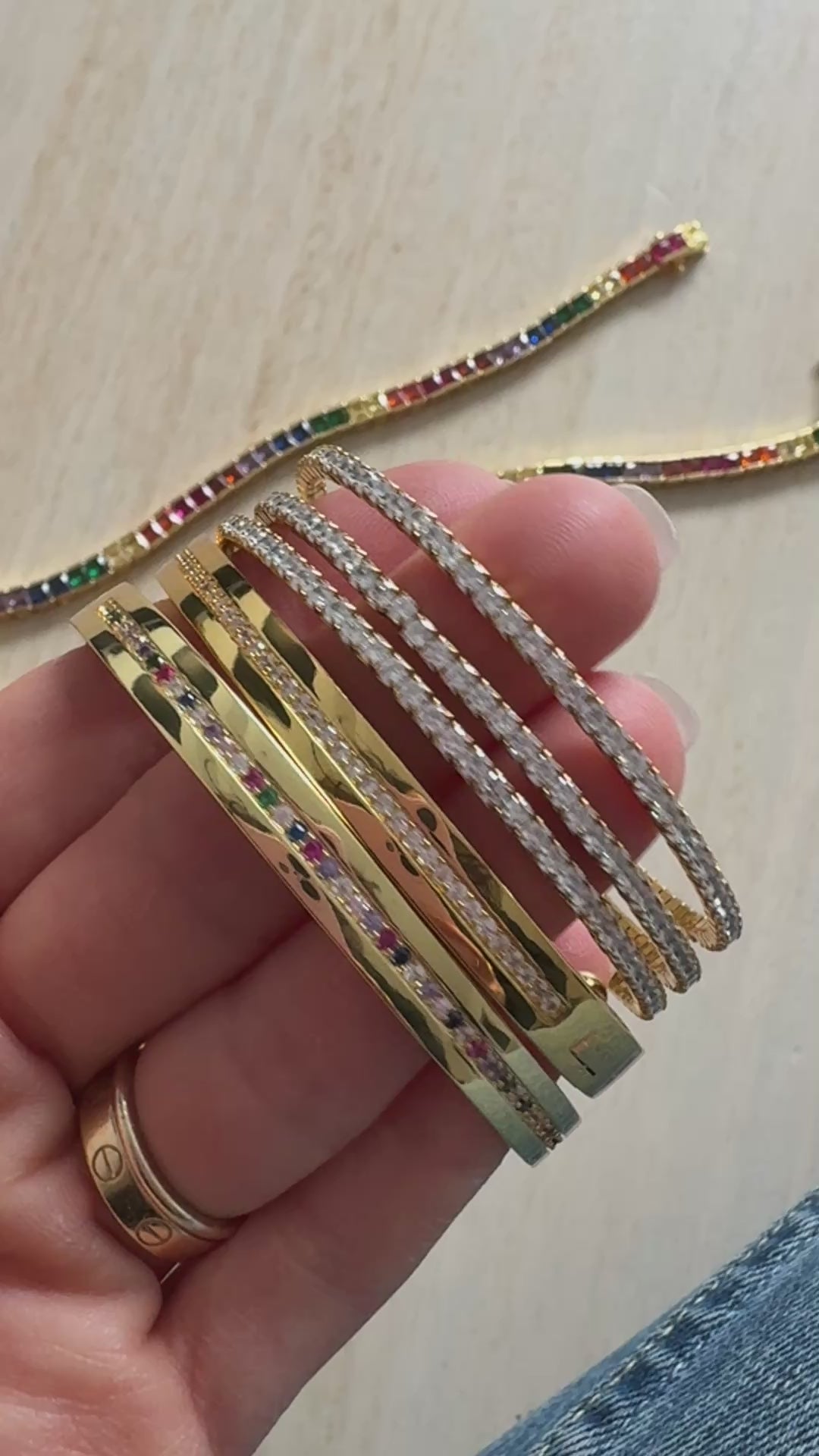 Gold plated. Cubic Zirconia. Hinge clasp.