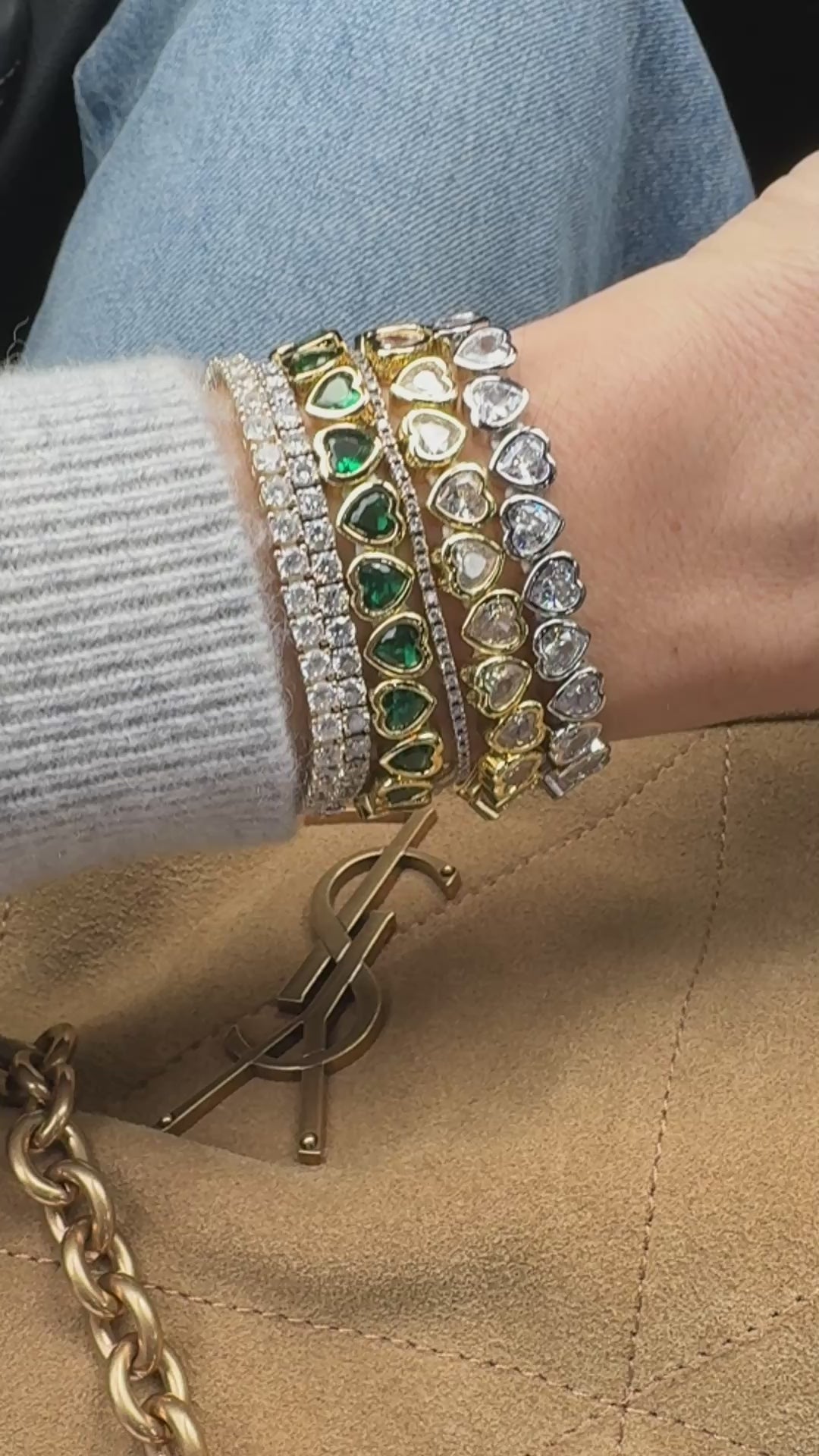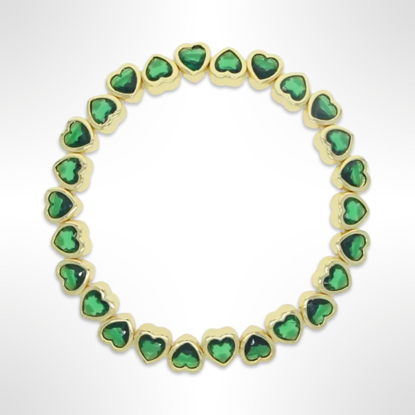 Elastic stretch bracelet. 14k gold plated brass and cubic zirconia. Length around: 6.5 inches.
